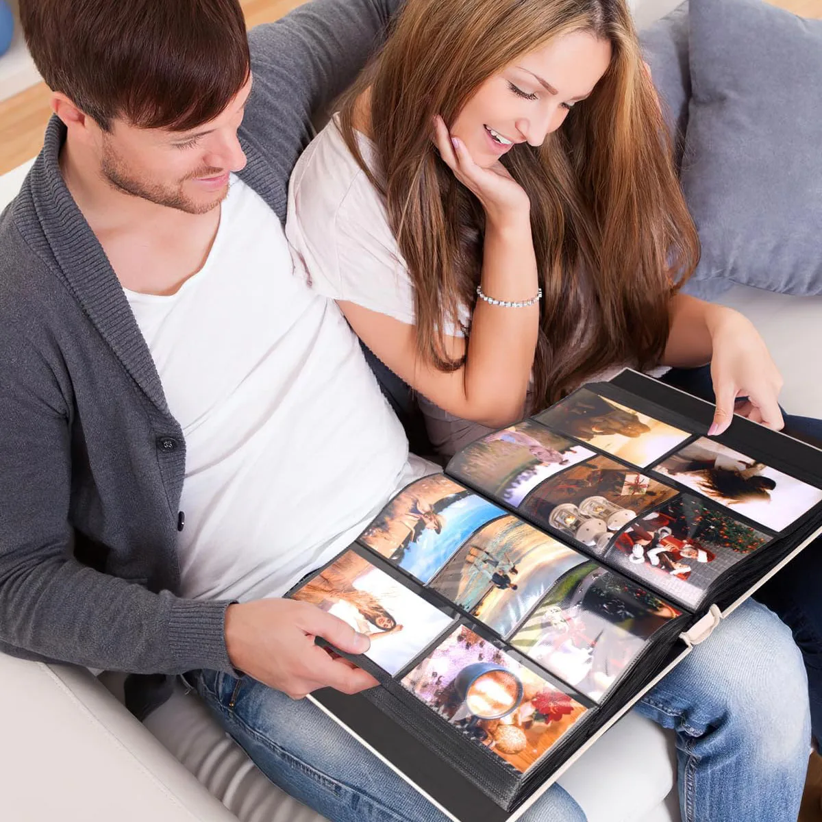 1 album photo de poche en lin 4×6-600 avec poches horizontales et verticales, adapté aux cadeaux de Saint-Valentin avec des photos de la mère