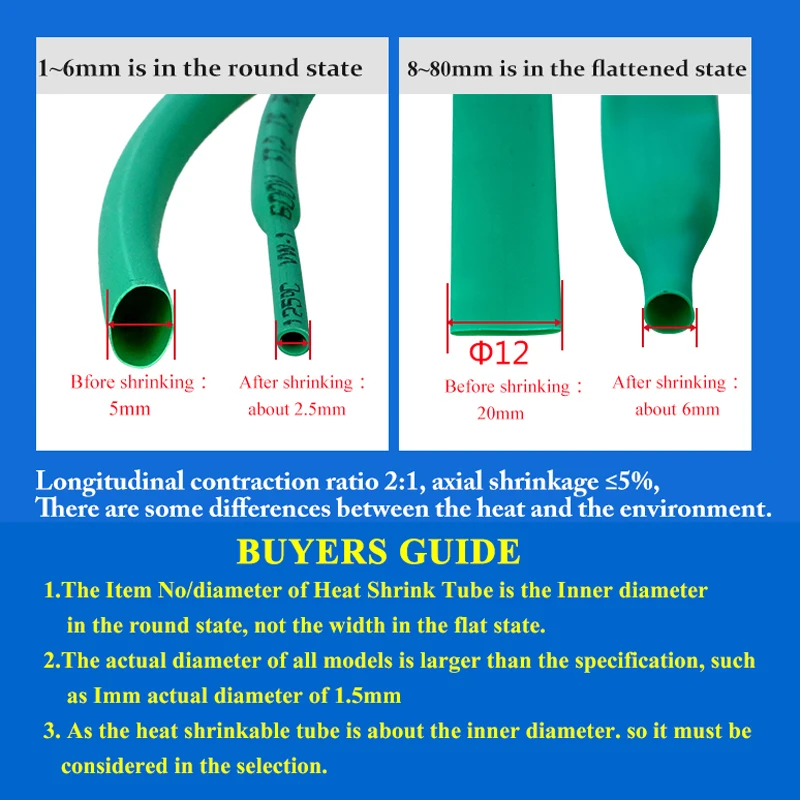 10 mètres/lot noir 1/2/3/4/5/6/8/10/10/12/14/16/18/20mm kit de tubes d’emballage thermorétractables tube d’isolation tube thermorésistant