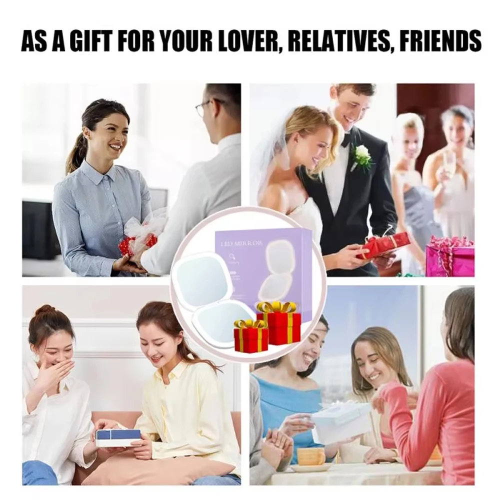 2 côtés du visage tactile Compact Led 3 couleurs Mini pliable Charge cosmétique miroir de maquillage avec lumière 5X grossissement Compact portable