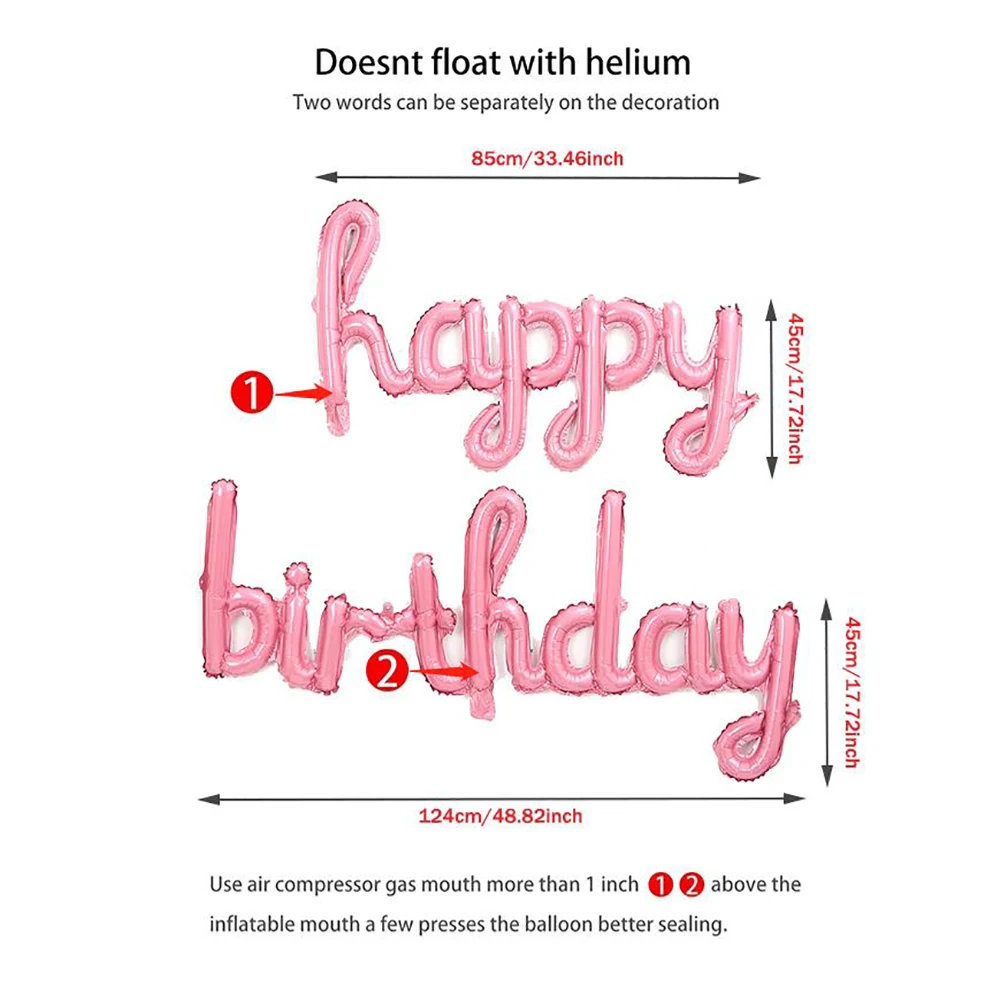2 pièces/ensemble joyeux anniversaire ballons rose violet feuille d’aluminium ballon fête d’anniversaire décoration fournitures maison bricolage accessoires accessoire