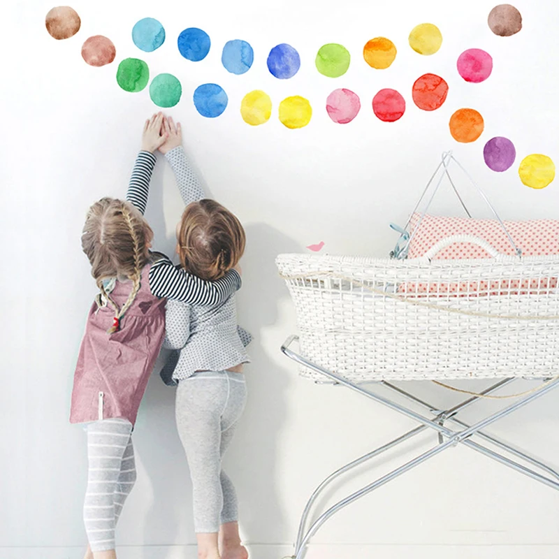 29 pièces/ensemble PVC bébé stickers muraux à pois colorés autocollants créatifs pour enfants vinyle décoration de chambre d’enfant