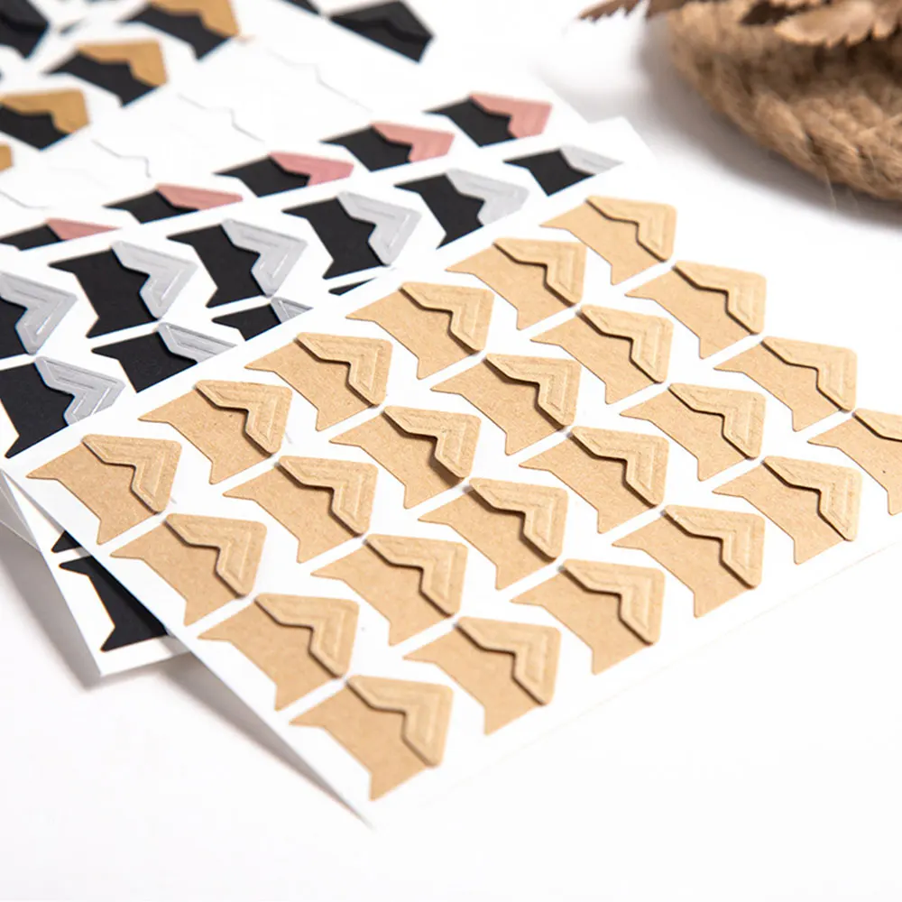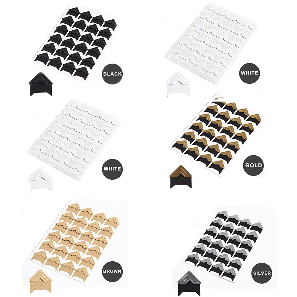 Autocollants d’angle auto-adhésifs vintage, noir, or, blanc, argent, marron, scrapbooking, album photo, accessoires de décoration, bricolage, 120 pièces