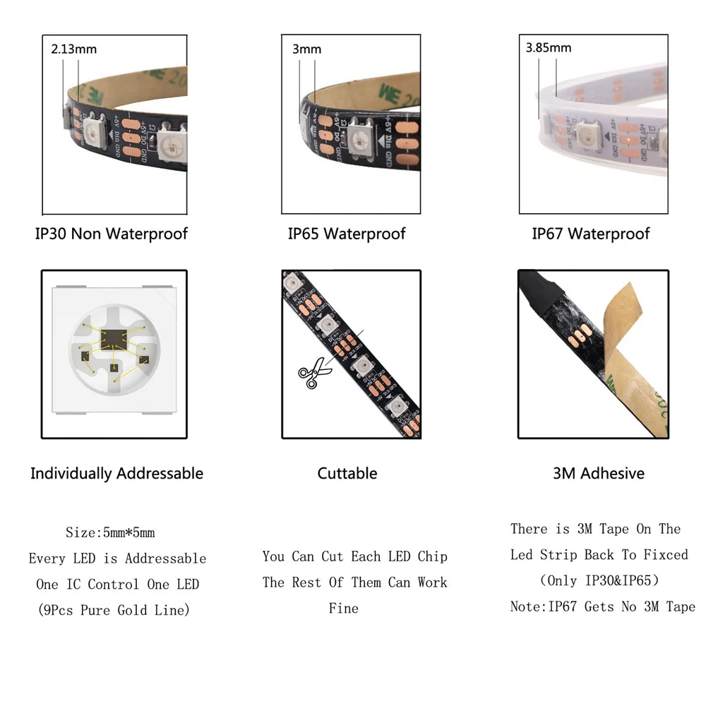 Be the first to review “Bande lumineuse Led DC5V WS2812B, 30/60/74/96/144 diodes/m, adressable individuellement, intelligente, 5050RGB, WS2812, Pixels, IP30/65/67”