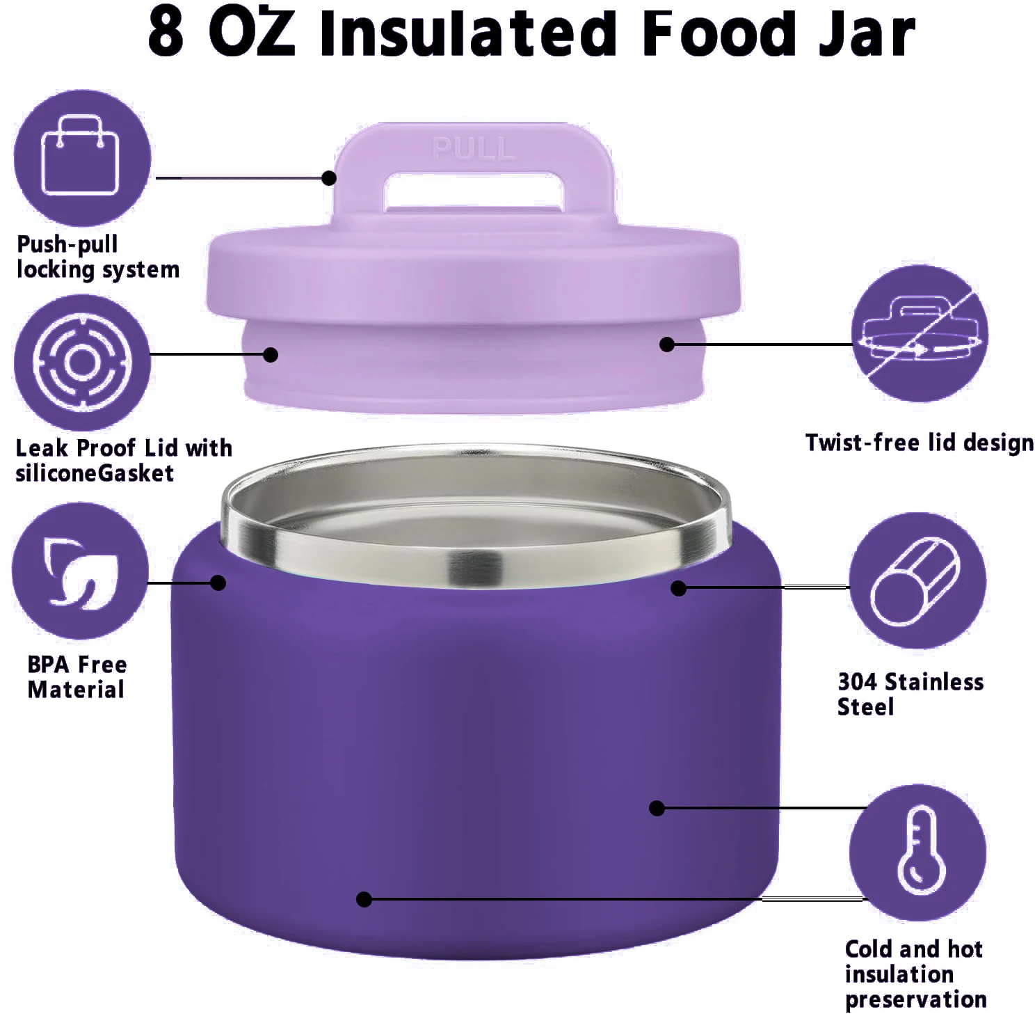 Boîte à déjeuner Bento avec pot alimentaire isolé sous vide en acier inoxydable de 8 oz