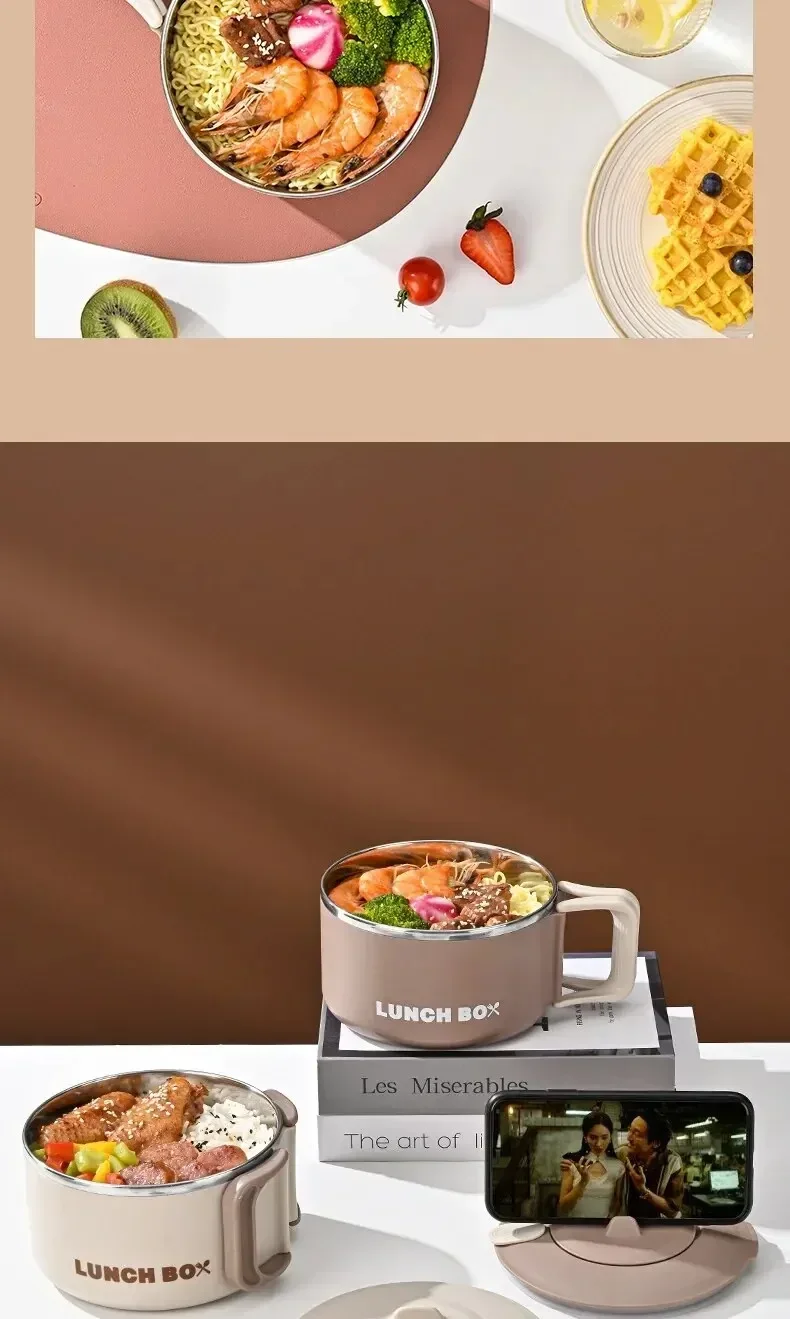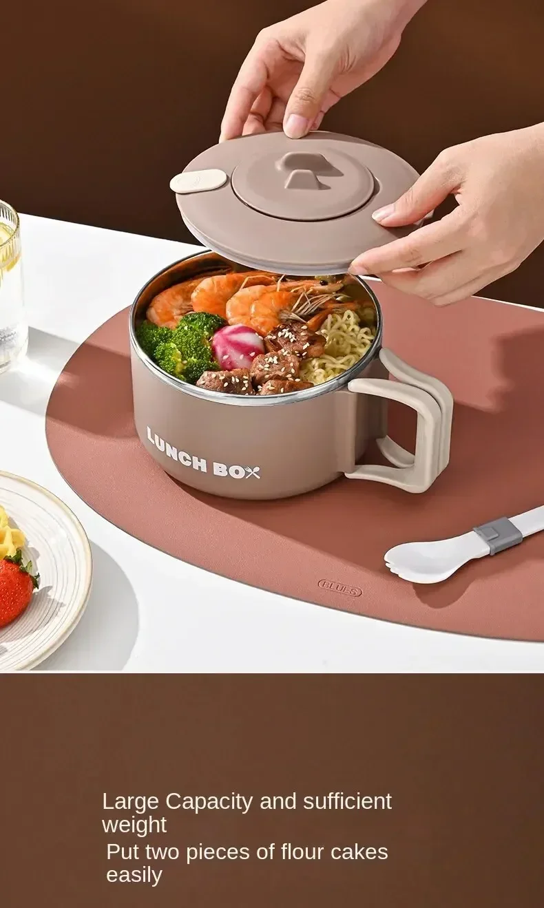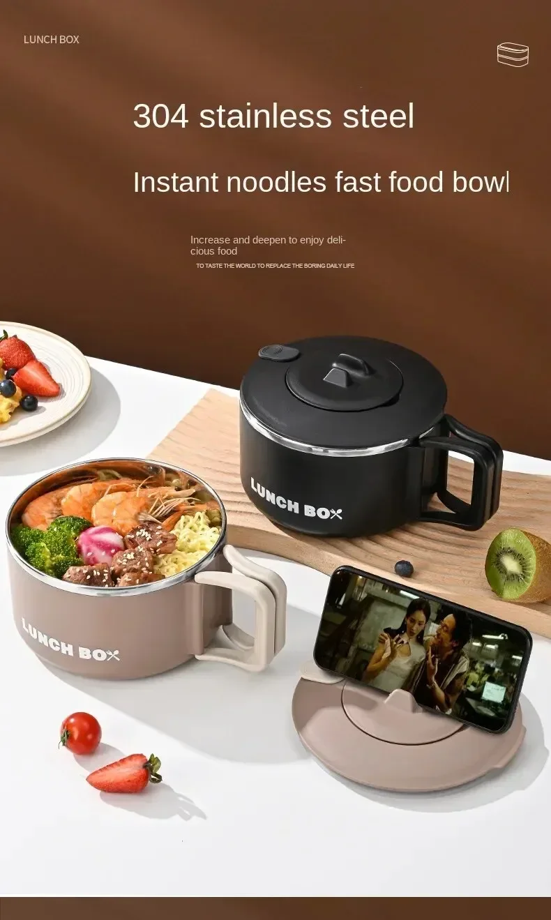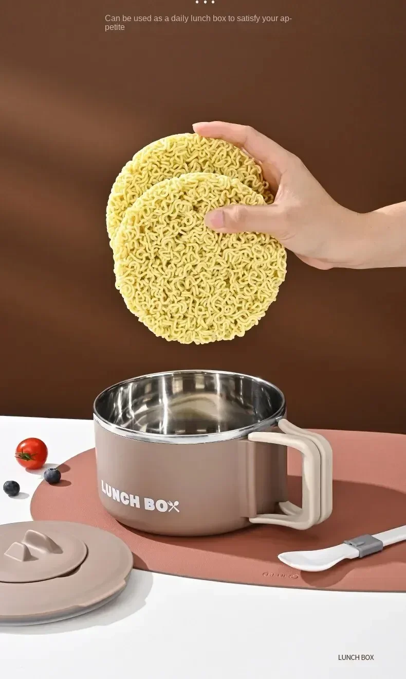 Boîte à déjeuner bol Ramen en acier inoxydable 304 avec couvercle, salade de fruits, riz, grande capacité, nouilles instantanées, bol à soupe, vaisselle de cuisine
