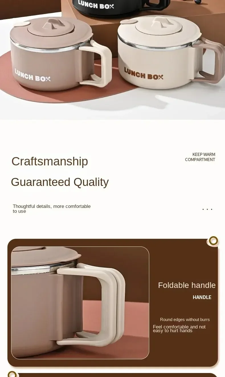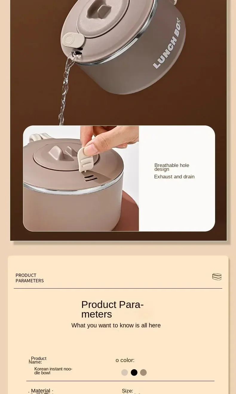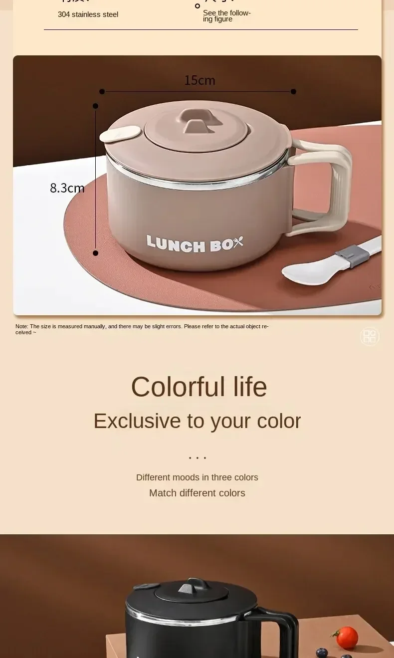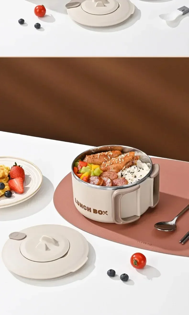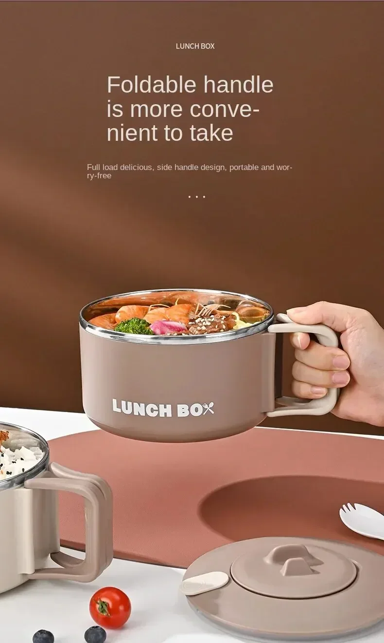 Boîte à déjeuner bol Ramen en acier inoxydable 304 avec couvercle, salade de fruits, riz, grande capacité, nouilles instantanées, bol à soupe, vaisselle de cuisine