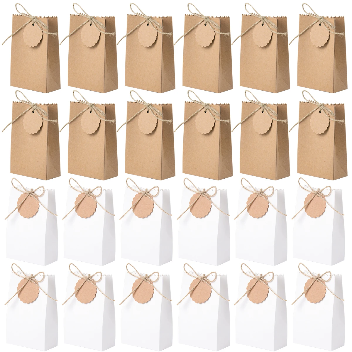 Boîte-cadeau rétro en papier Kraft, 10 à 30 pièces, sac d’emballage de bonbons pour biscuits blancs et bruns avec étiquettes en corde, fournitures cadeaux pour fête d’anniversaire et de mariage