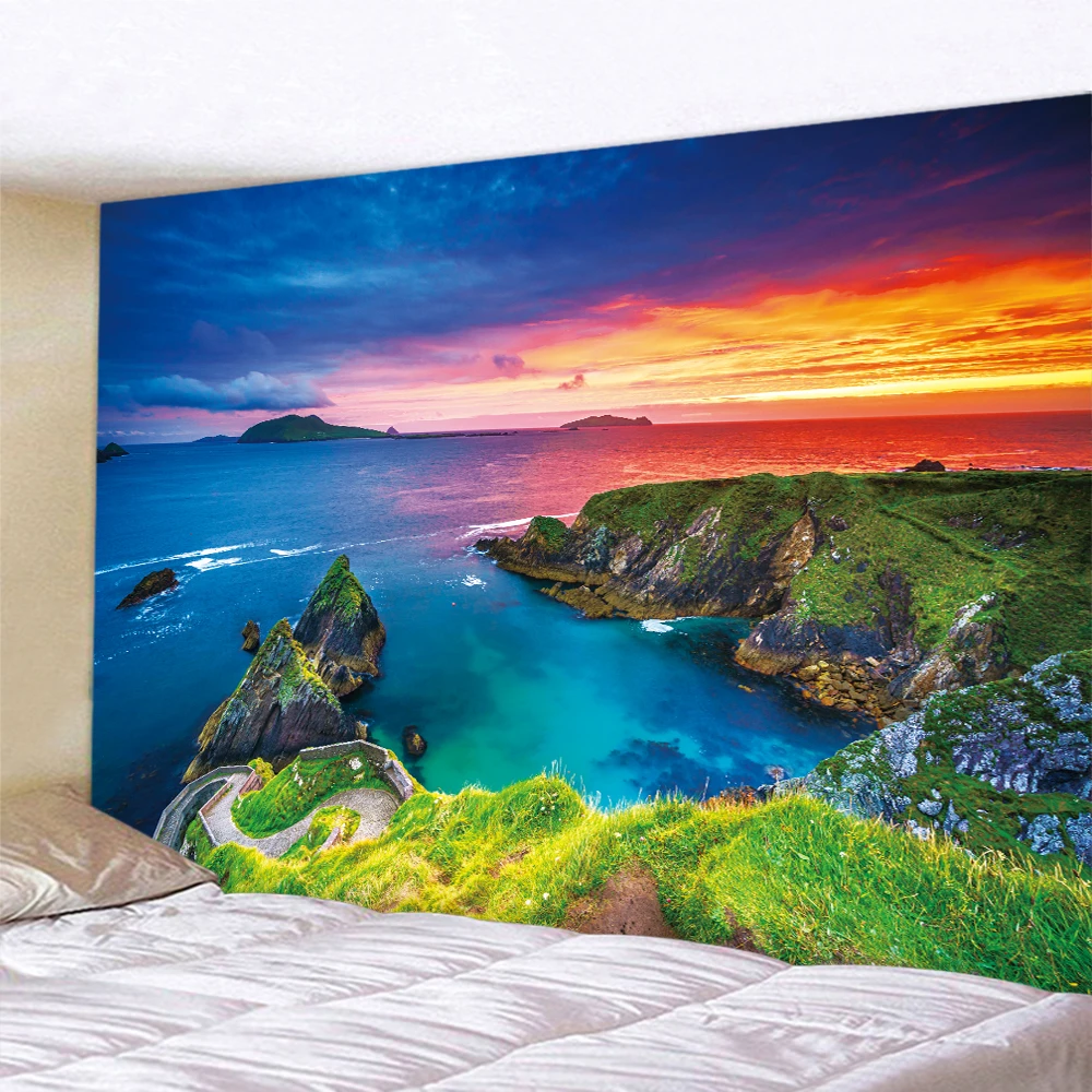 Bord de mer plage coucher de soleil scène psychédélique décor à la maison Art tapisserie Hippie bohème Tarot chambre mur Mandala suspendu
