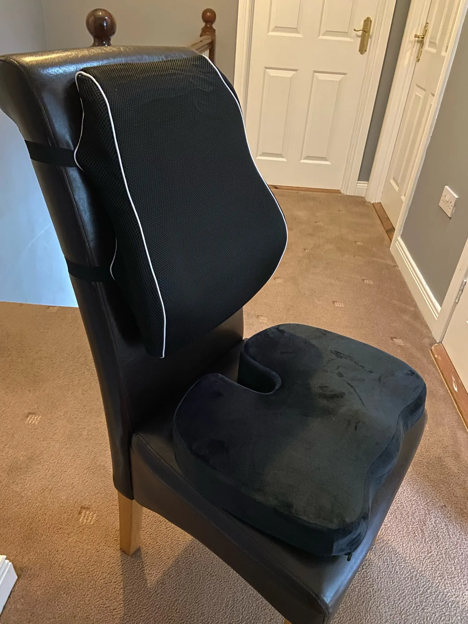 Le coussin est parfait pour ma chaise, ce qui me donne maintenant une meilleure soutien dans la zone lombaire.