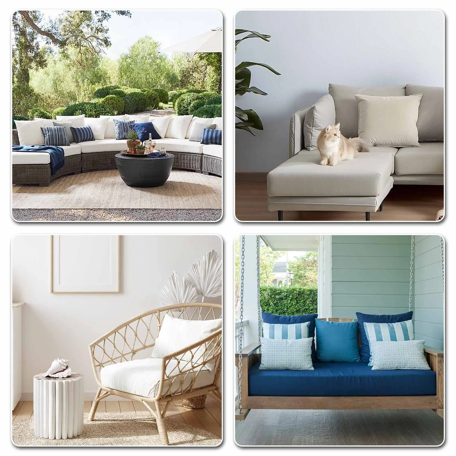 Coussins de siège et dossier en tissu imperméable personnalisés – Résistant aux UV, à séchage rapide – pour meubles de patio, bancs de jardin, chaises longues au bord de la piscine