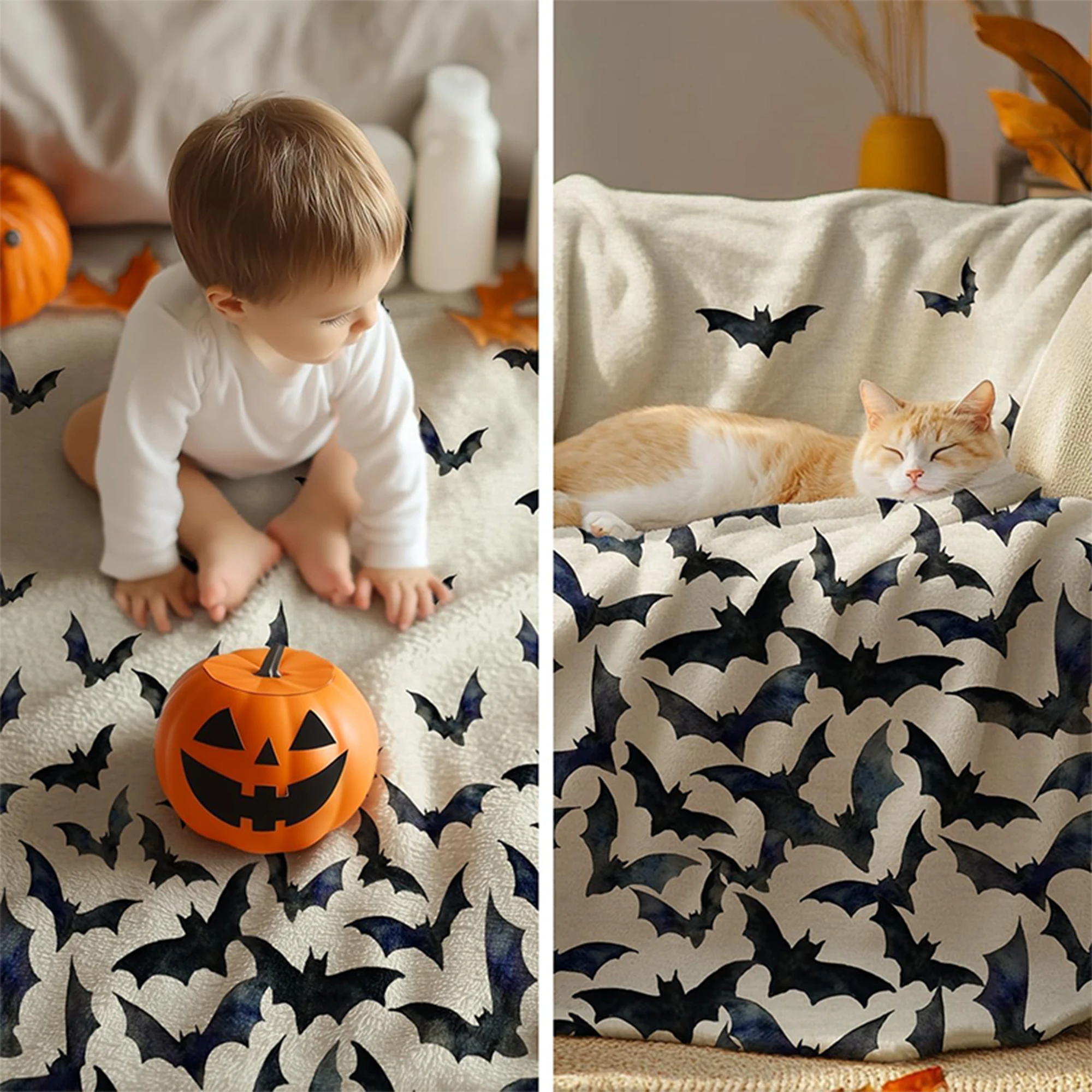 Couverture polaire d’Halloween imprimée chauve-souris effrayante : parfaite pour les nuits qui refroidissent! Couverture en flanelle, douce et confortable, cadeau