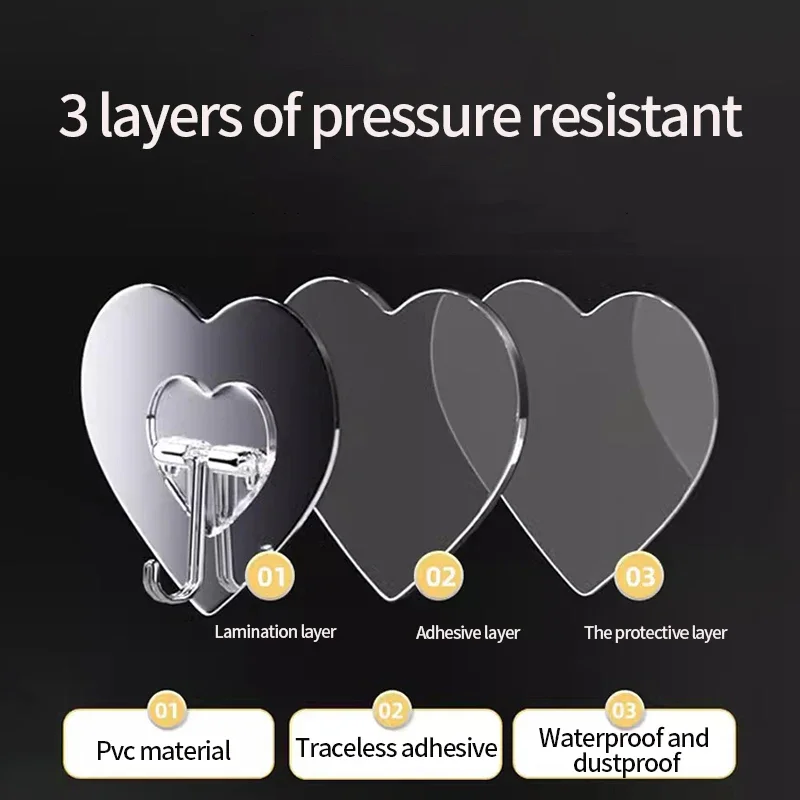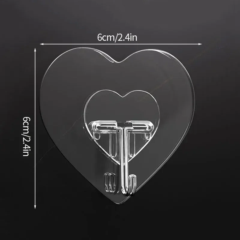 Crochets transparents en forme de cœur, support de cintres d’amour en plastique sans poinçonnage, porte-clés auto-adhésif, porte-serviettes, crochets polyvalents, support de rangement