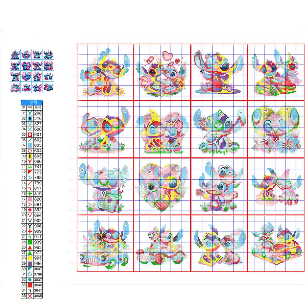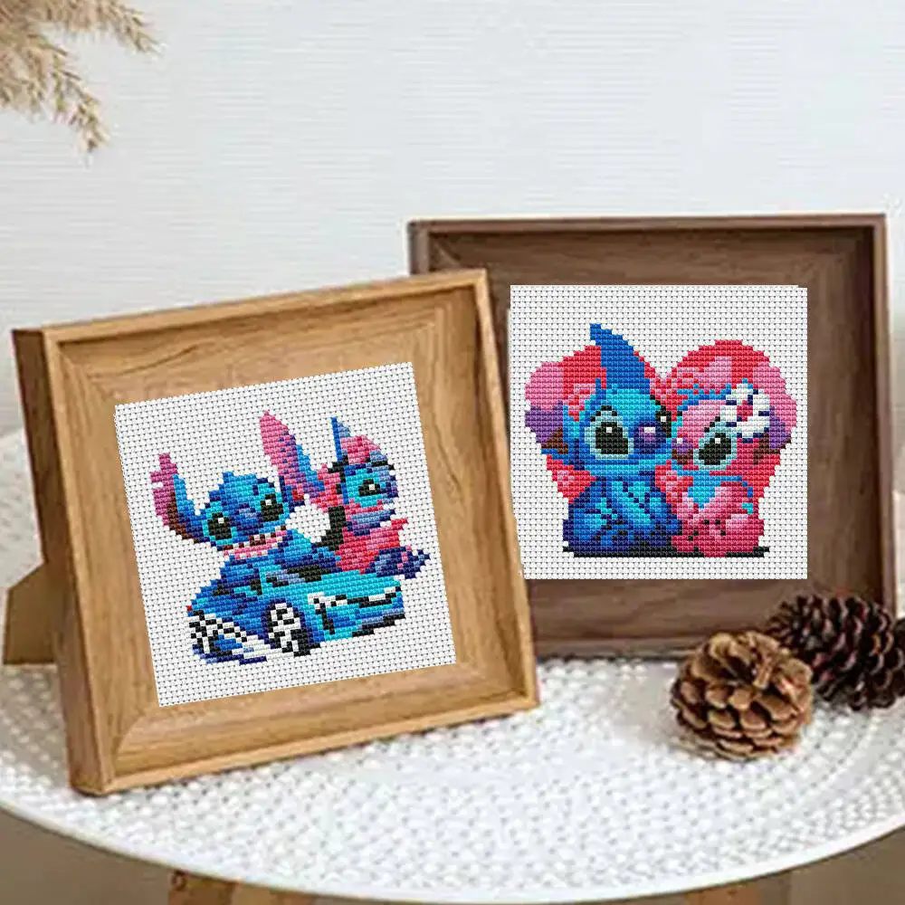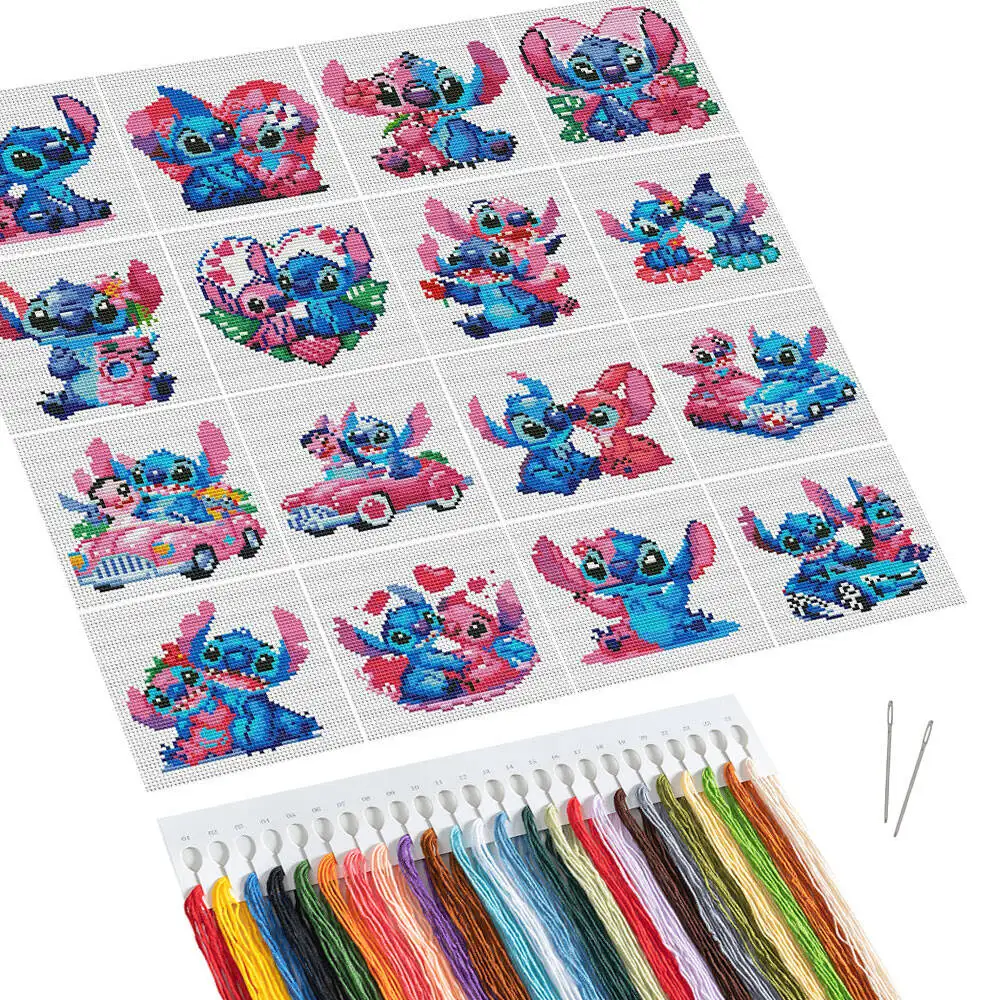Disney 16 pièces MINI broderie dessin animé Lilo et point ange 11CT ensemble de toile imprimée Kit de point de croix coeur cadeaux de saint valentin