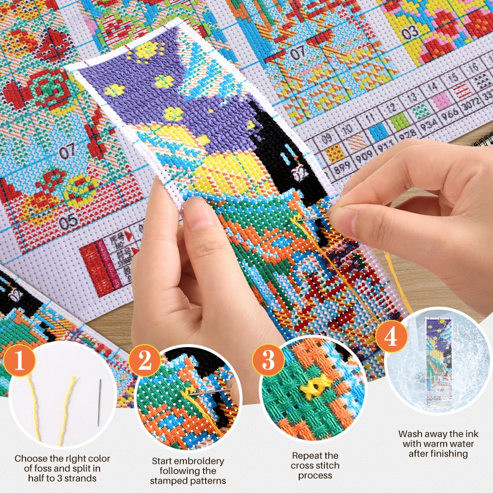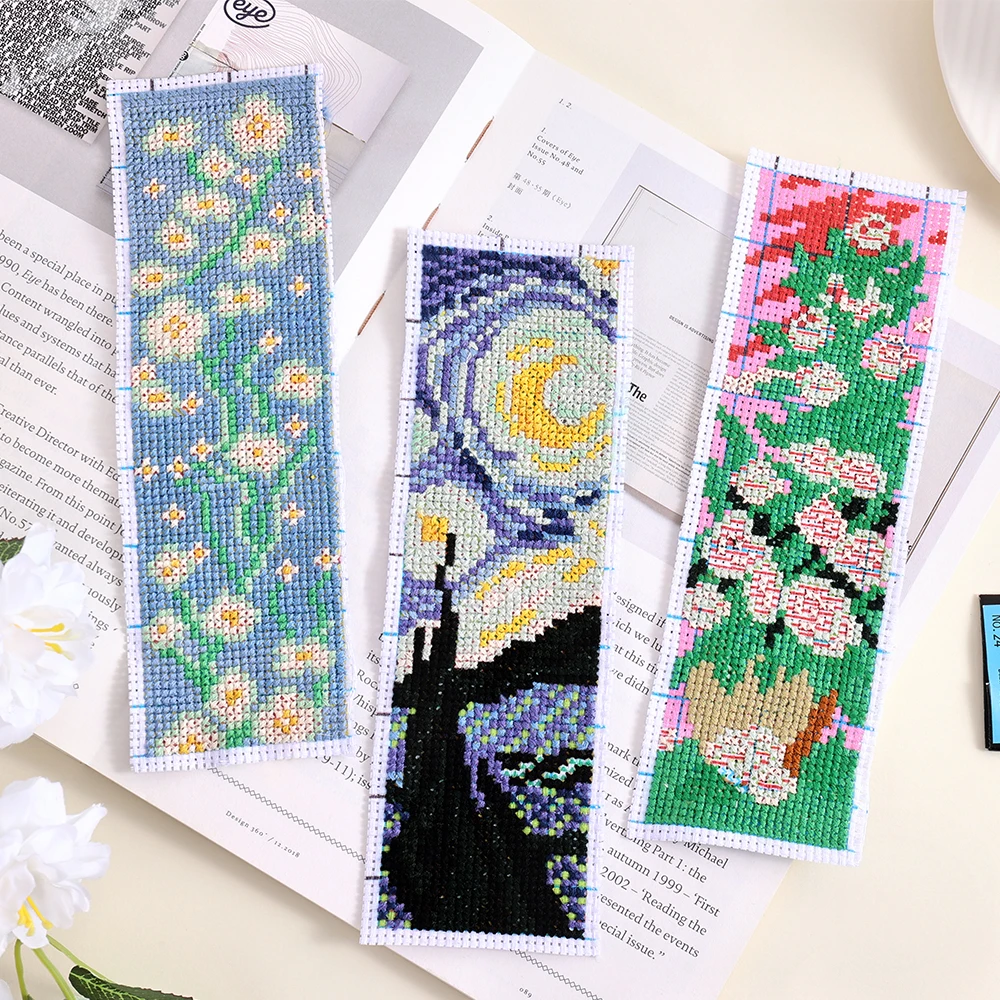 Ensemble de marque-pages en point de croix, peinture florale Vintage, Style brodé fait à la main, Art pour les amateurs de livres, cadeau élégant, 6 pièces