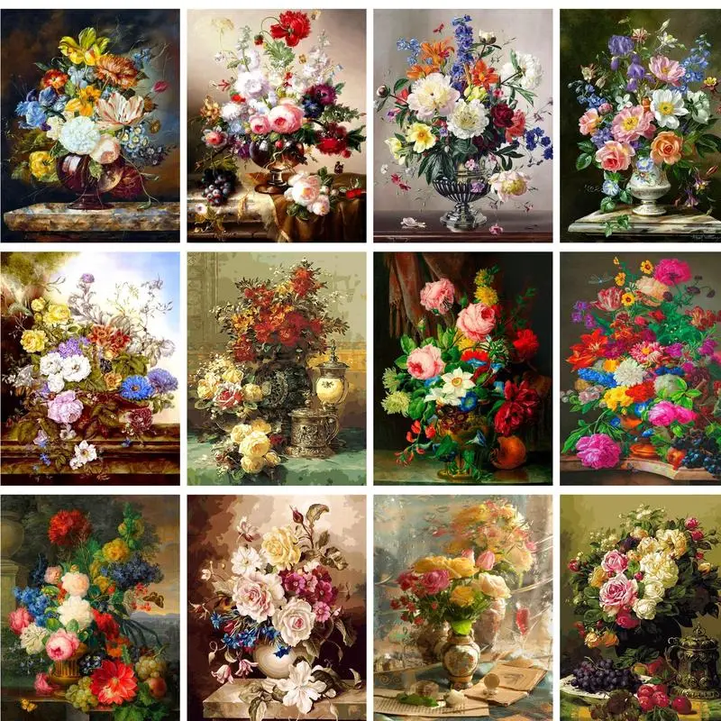 GatyzQuantité-Peintures acryliques modernes pour adultes, peinture par numéros, fleurs classiques, cadeau de peintures à la maison ouvertement, bricolage fait à la main, temps mort