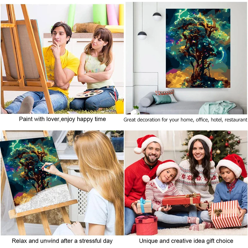 Bonne qualité des peintures, cependant la toile ne montre pratiquement aucun trait ni numéro pour peindre. Il serait apprécié si vous pouviez rendre les lignes un peu plus foncées pour mieux voir, et que les chiffres ne soient pas trop rapprochés car ils se confondent ou sont recouverts par l’autre peinture.