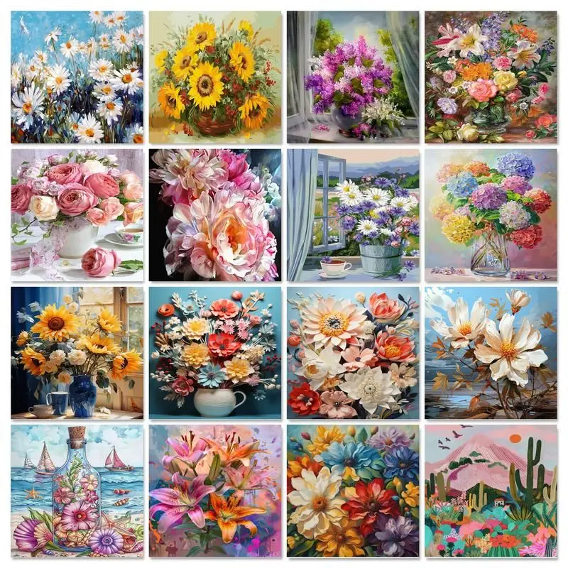 Gatyztoire bricolage peint à la main peinture à l’huile 60×75 cm peinture par numéros pour adultes Kits fleurs photo peinture décoration de la maison bricolage cadeau