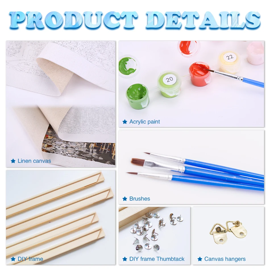 Gatyztoire – Kit de peinture par numéros pour rebord de fenêtre, fournitures d’art, marqueurs de couleur à l’huile, cadre photo, aquarelle, décoration de la maison