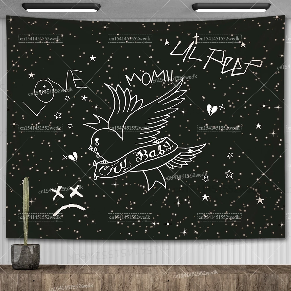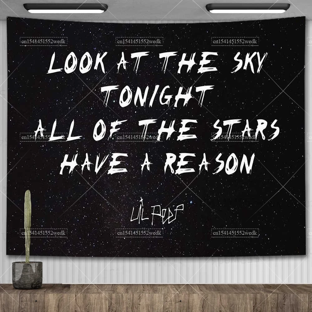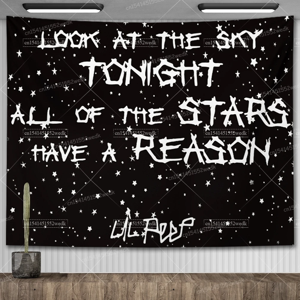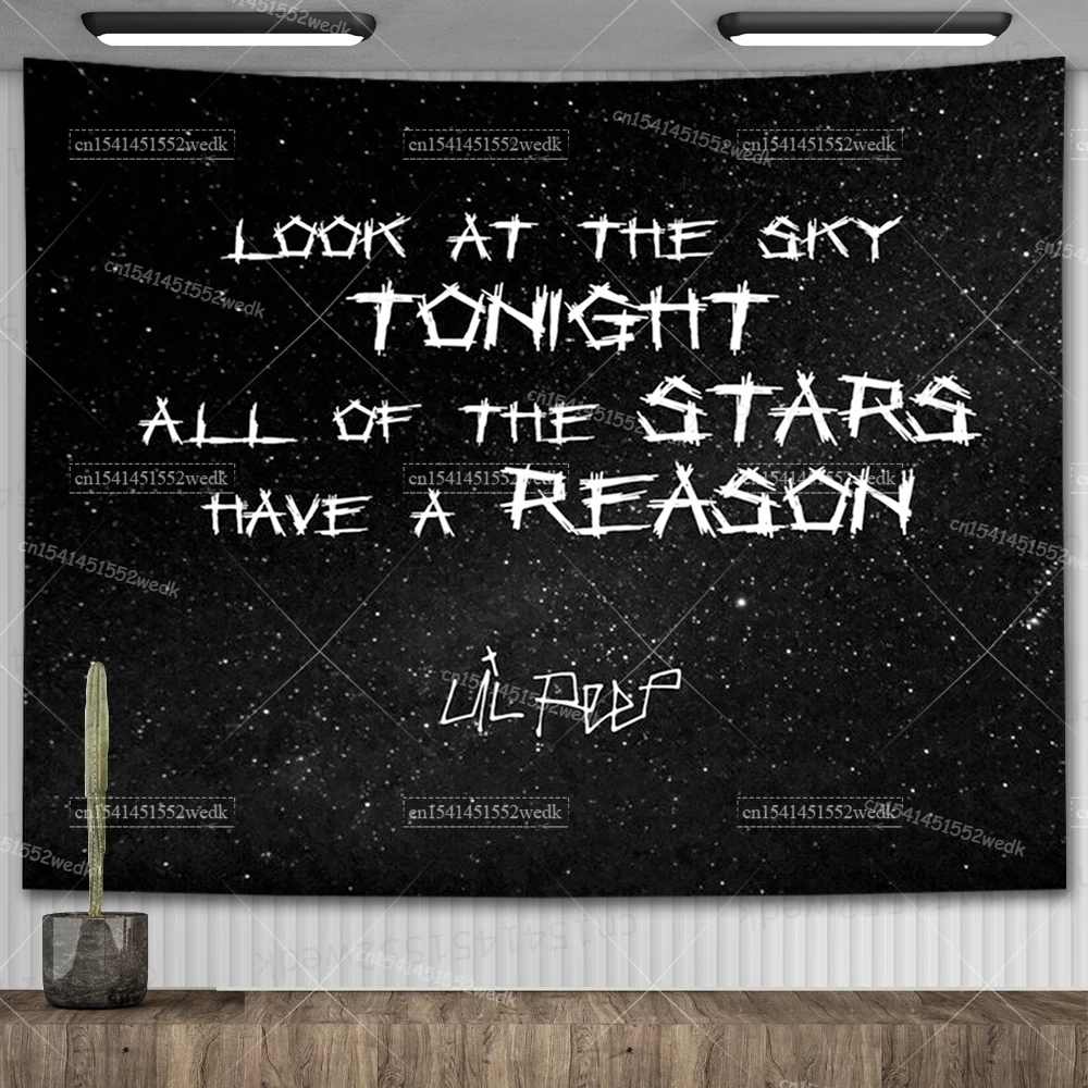Lil Peep – tapisserie murale suspendue, Look au ciel, couverture artistique, tapisserie de sorcellerie Hippie noire, décor de pièce esthétique