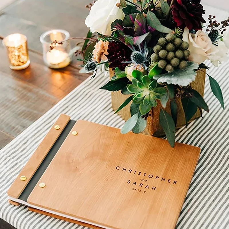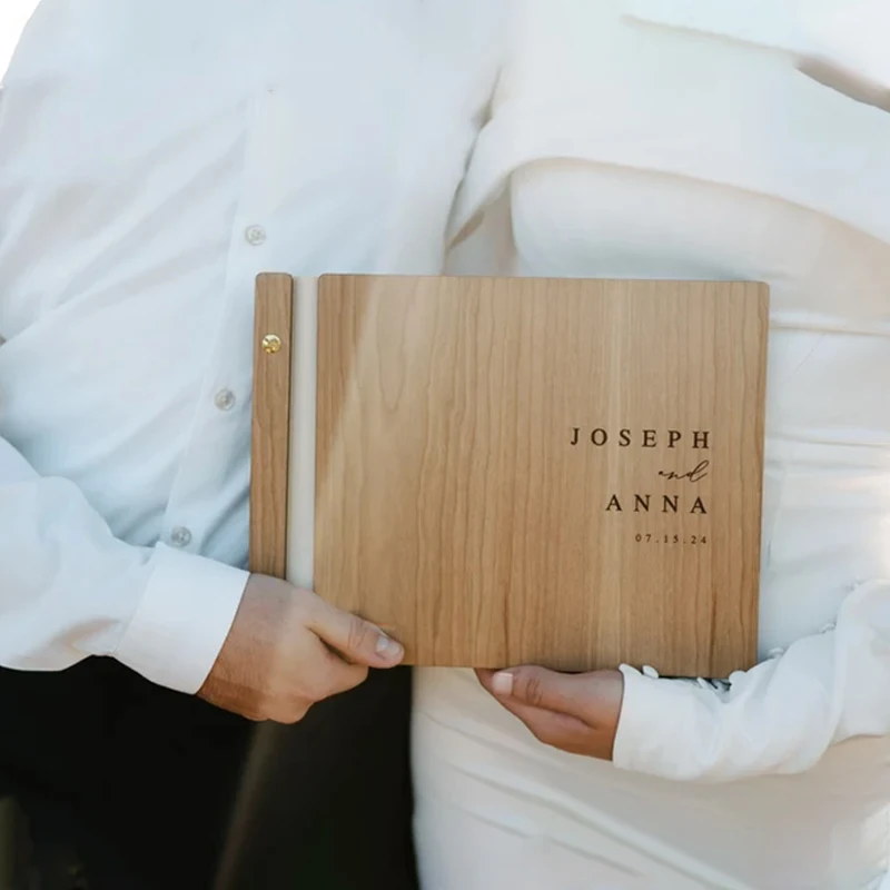 Livre d’or personnalisé pour cadeau de mariage, Album de photos de messages nobles blancs, Simple et élégant, souvenir horizontal, Signature, livre d’or