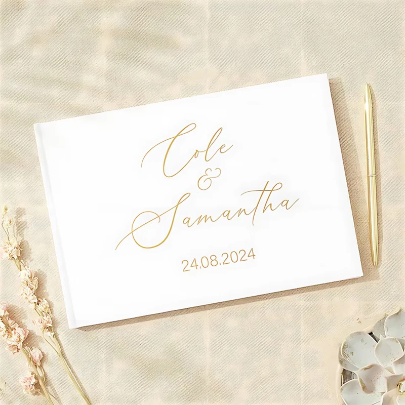 Livre d’or personnalisé pour cadeau de mariage, Album Photo de Message Noble blanc, Simple et élégant, souvenir horizontal, Signature, livre d’or