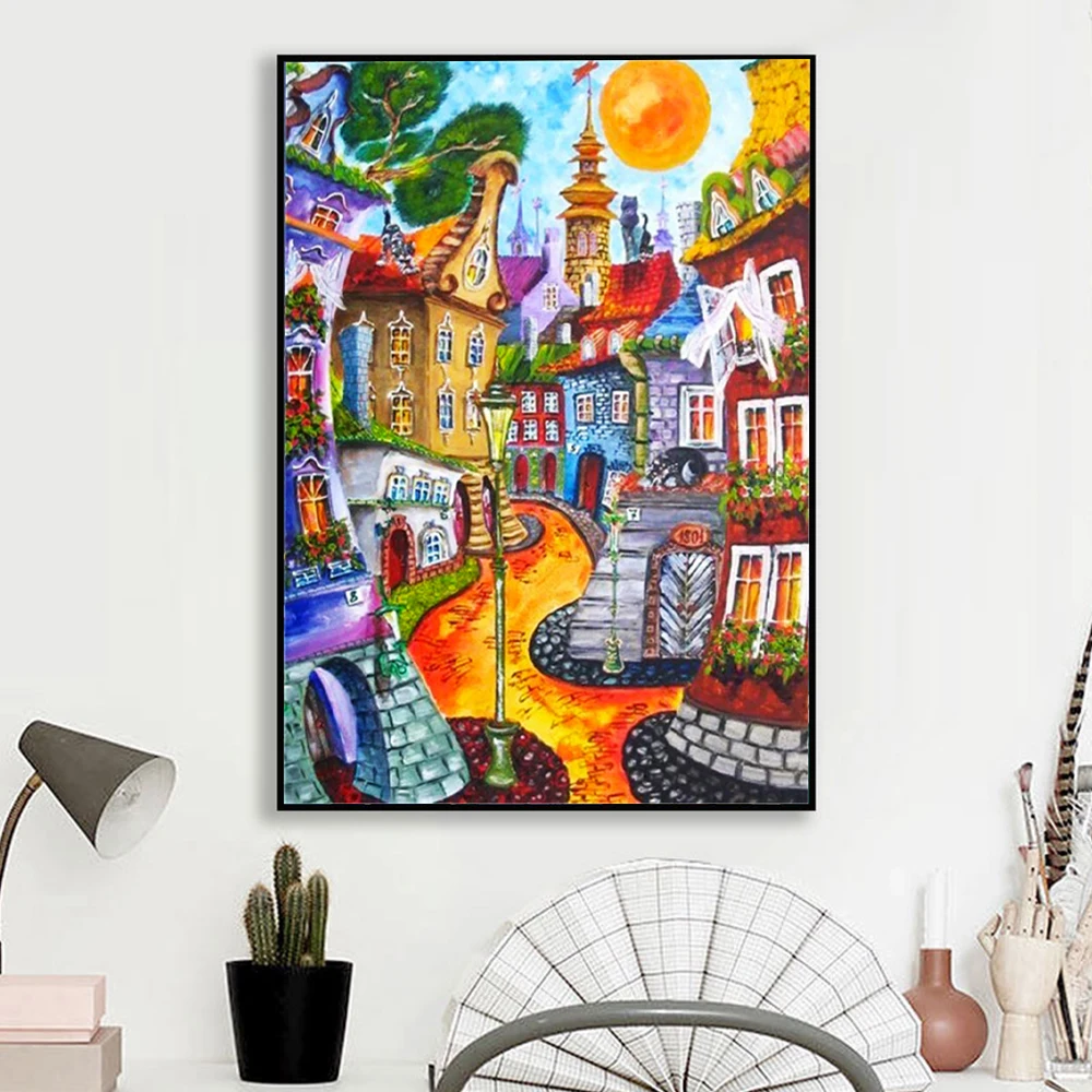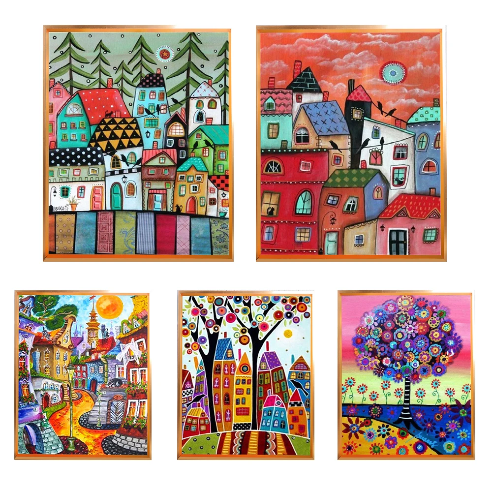 Meian 11/14CT broderie peinture maisons de dessins animés point de croix Kits DMC toile imprimée bricolage arts scéniques à la main décoration de la maison