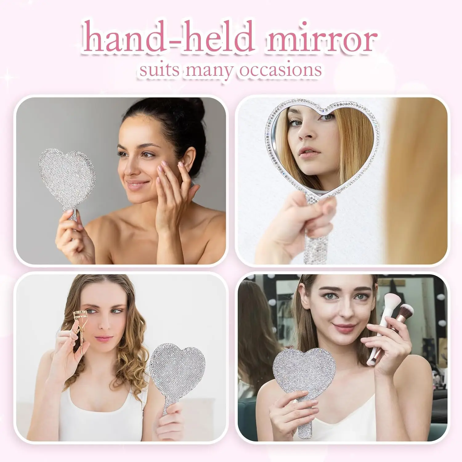 Miroir de maquillage à main en diamant, miroir en forme de cœur d’amour, poignée féminine, outils de beauté cosmétiques, miroir de maquillage pour filles