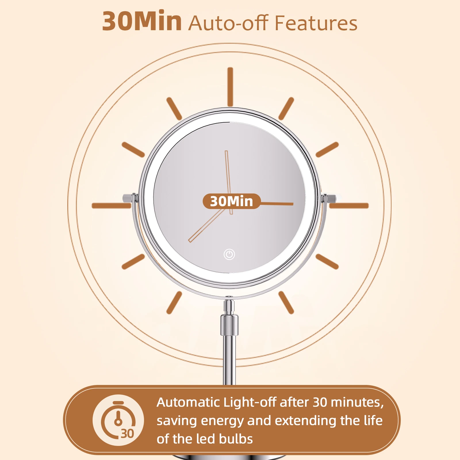 Miroir de maquillage debout avec lampe lumineuse, luminosité réglable, grossissement 10X, 3 lumières pour documents, recommandé, miroir cosmétique, 8 po