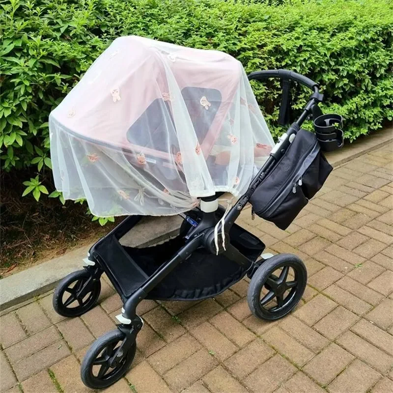Moustiquaire pour Poussette de Corée du Sud, Couverture Complète Universelle en Gaze Brodée pour Bébé, Respirante pour l’Été