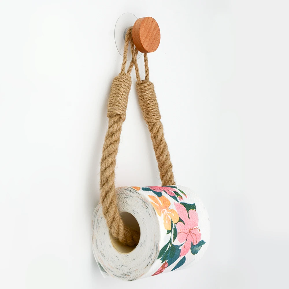 Porte-papier hygiénique en corde de chanvre, sans poinçonnage, support de rangement mural pour rouleau de papier, accessoires de salle de bains, offre spéciale
