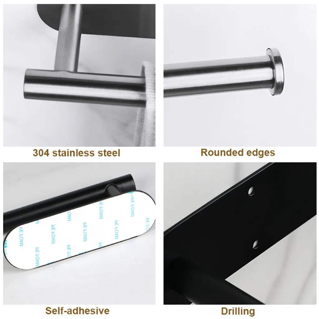 Porte-serviettes en papier toilette auto-adhésif, porte-rouleau de papier sans poinçon, support de rangement à crochet de cuisine, support mural en acier inoxydable