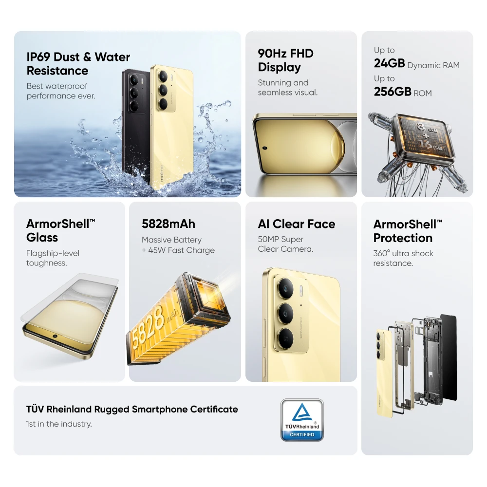 [Première mondiale] realme C75 Smartphone Version russe Chipset Helio G92 Max Batterie massive de 5828 mAh Chargement rapide 45W Ecran FHD de 6,72 pouces 90Hz Appareil photo ultra précis 50MP IP69 NFC