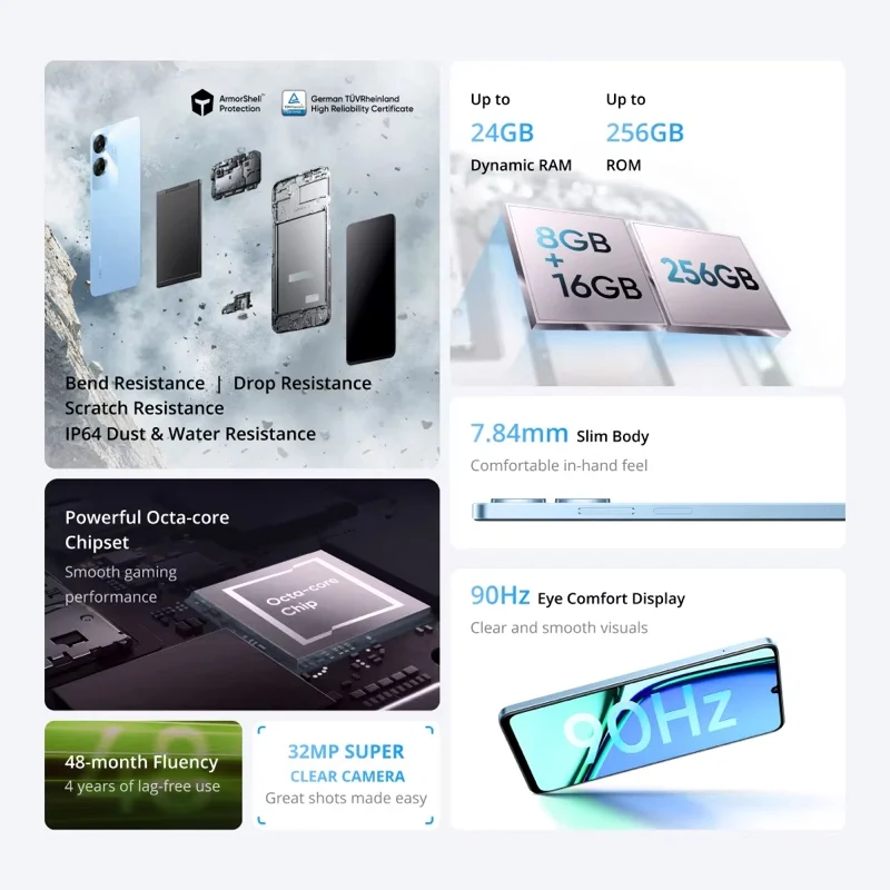 Realme-Smartphone Note 60, appareil photo 32MP, 6.74 en effet, écran 90Hz, batterie 5000mAh, 128 Go, IP64, puce Octa-Core injuste, en stock