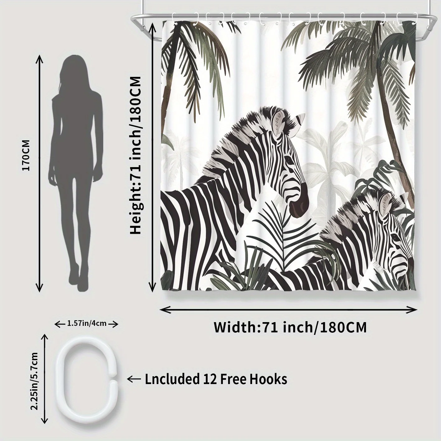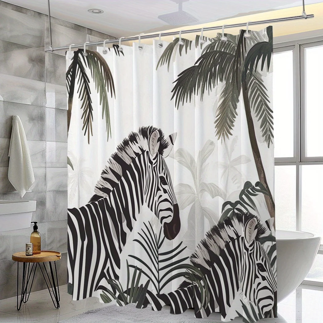 Rideau de douche imprimé zèbre avec 12 crochets, décor de salle de bain en Polyester de haute qualité, facile à entretenir et Durable, séparateur de pièce élégant, 1 pièce