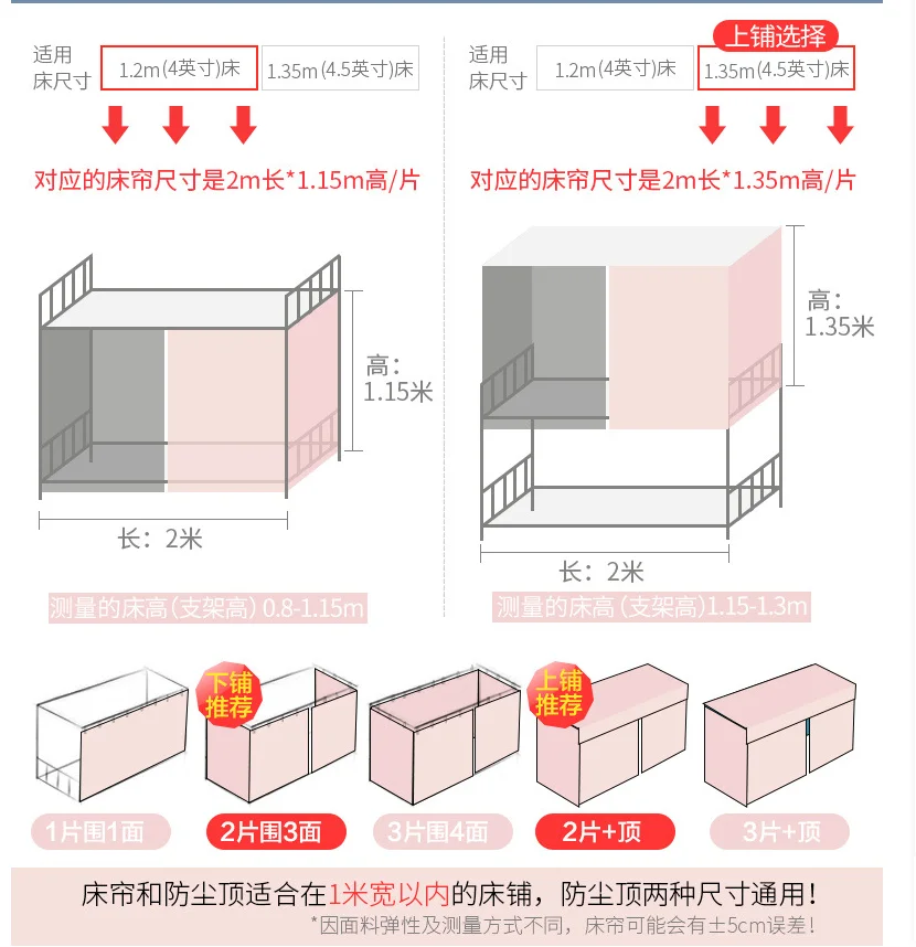 Rideaux de lit occultants moustiquaire dortoir lit tente bas superposé respirant auvent rideaux de lit pour enfants chambre décor à la maison