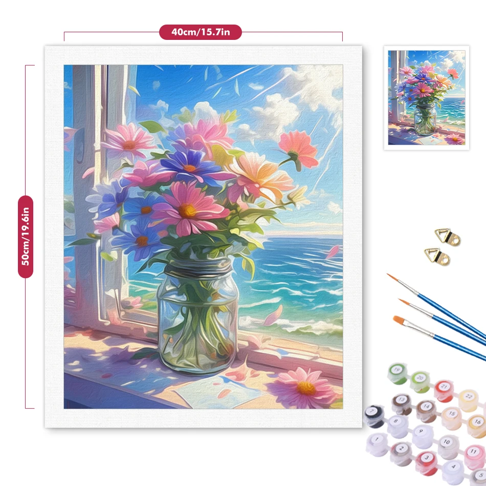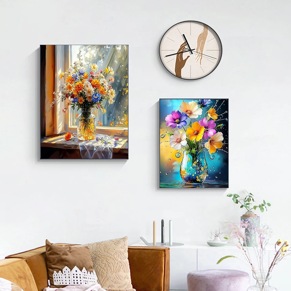 RUOPOTY-Peinture par numéros pour adultes, arrangement de fleurs, décoration de vase, cadre d’art mural, marqueurs de documents modernes, image sur toile, art mural