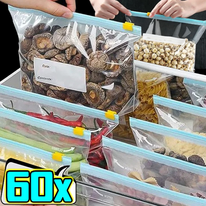 Sac de scellage alimentaire réutilisable, 60/10 pièces, sacs de rangement debout pour congélateur, conteneurs étanches à fermeture éclair, pochette de rangement fraîche, sac à fermeture éclair