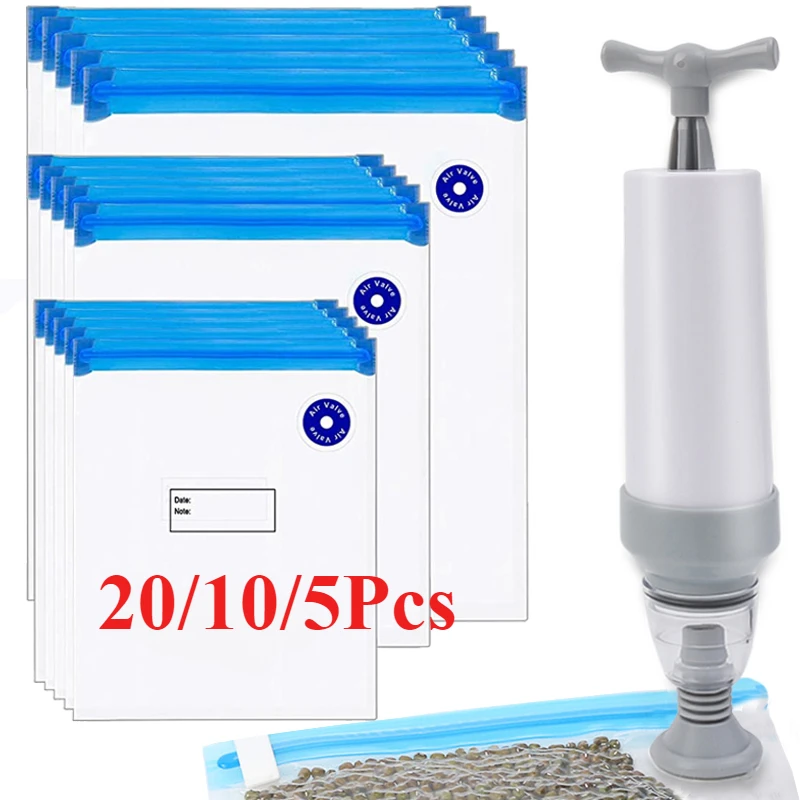 Sac de scellage sous vide réutilisable, pompe à Valve d’air, sac de conservation des légumes et des viandes fraîches, sacs à fermeture éclair pour le stockage des aliments de cuisine
