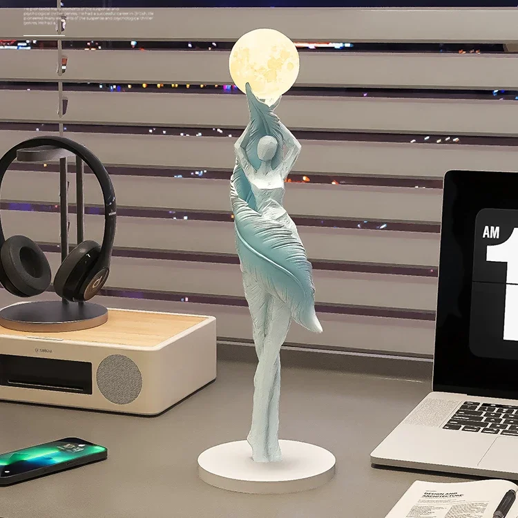 Sculpture créative de fille en plumes, ornement en résine, décoration lumineuse de bureau, Statue de personnage, décoration nordique moderne pour la maison