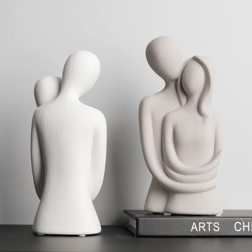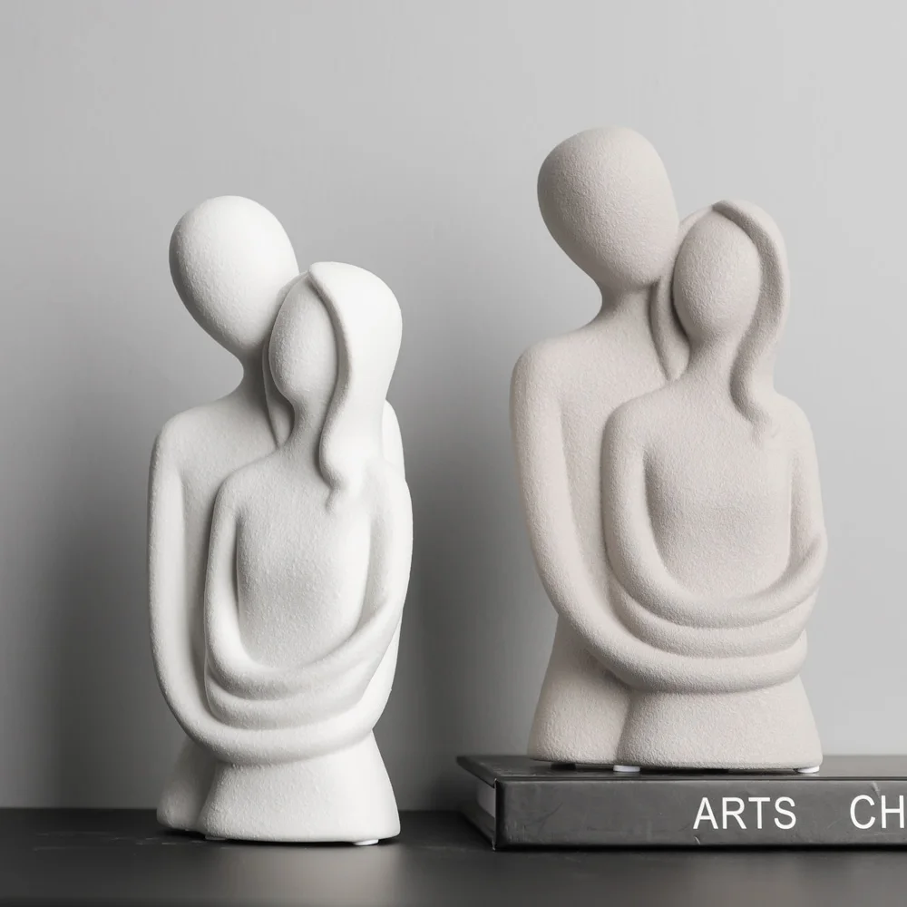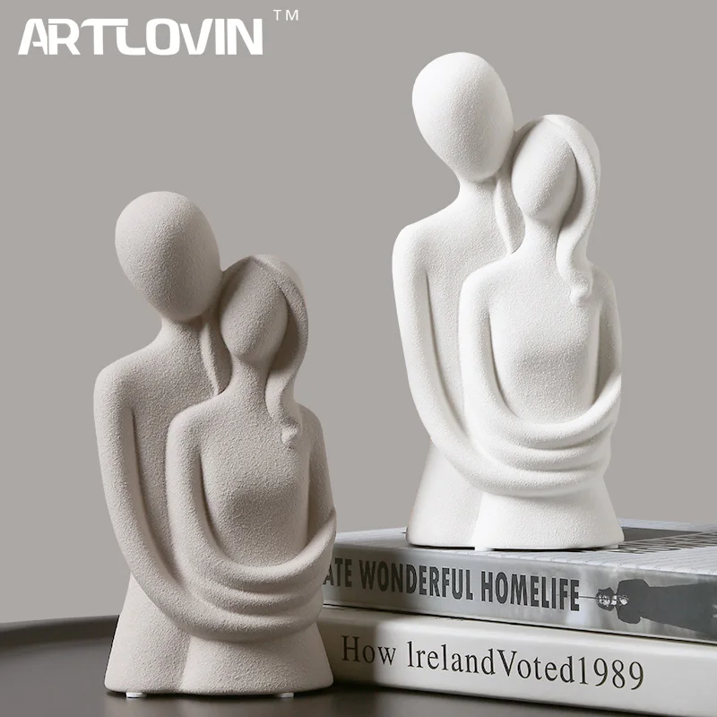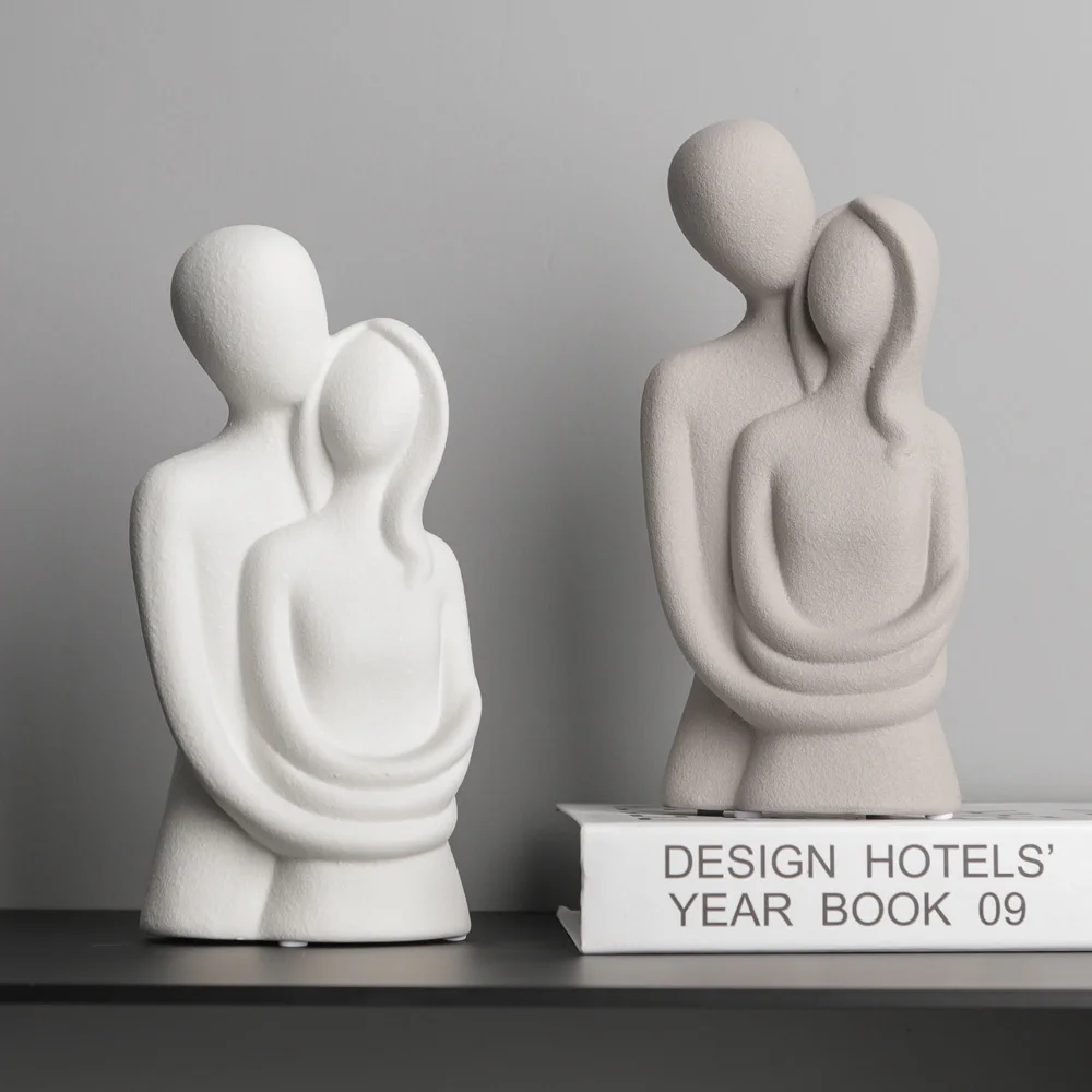 Sculpture de couple abstraite nordique, personnages de câlin d’amant, statues en céramique givrée, Figurines blanches/grises unies, cadeaux de mariage
