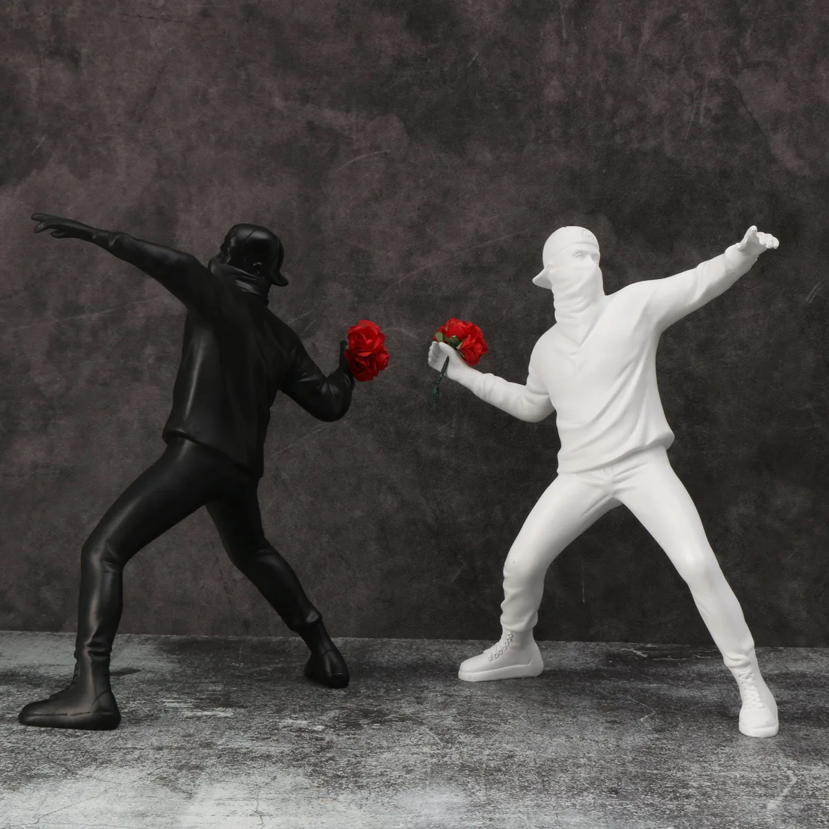 Sculptures Banksy en résine, lanceur de fleurs, Statue de bombardier, décoration de la maison, accessoires de bureau, Figurine décorative Inter, 1 pièce