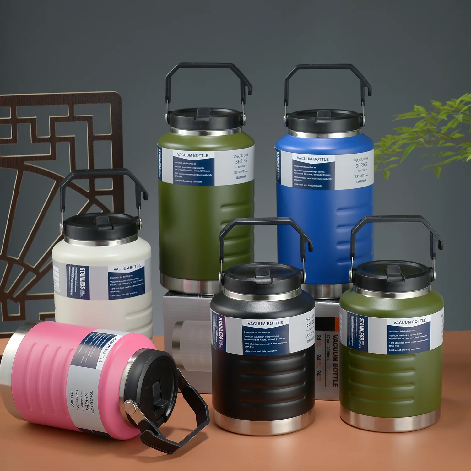 Seau à glace isolé de grande capacité en acier inoxydable, revêtement 304, garde au chaud et au froid, bouilloire, tasses isolées, cadeau de 1500/2000ml
