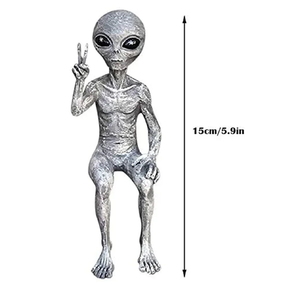 Statue d’alien en résine drôle, décoration de jardin extérieur, Sculpture naine ovni, décoration de bureau pour la maison, Halloween, ornements de noël