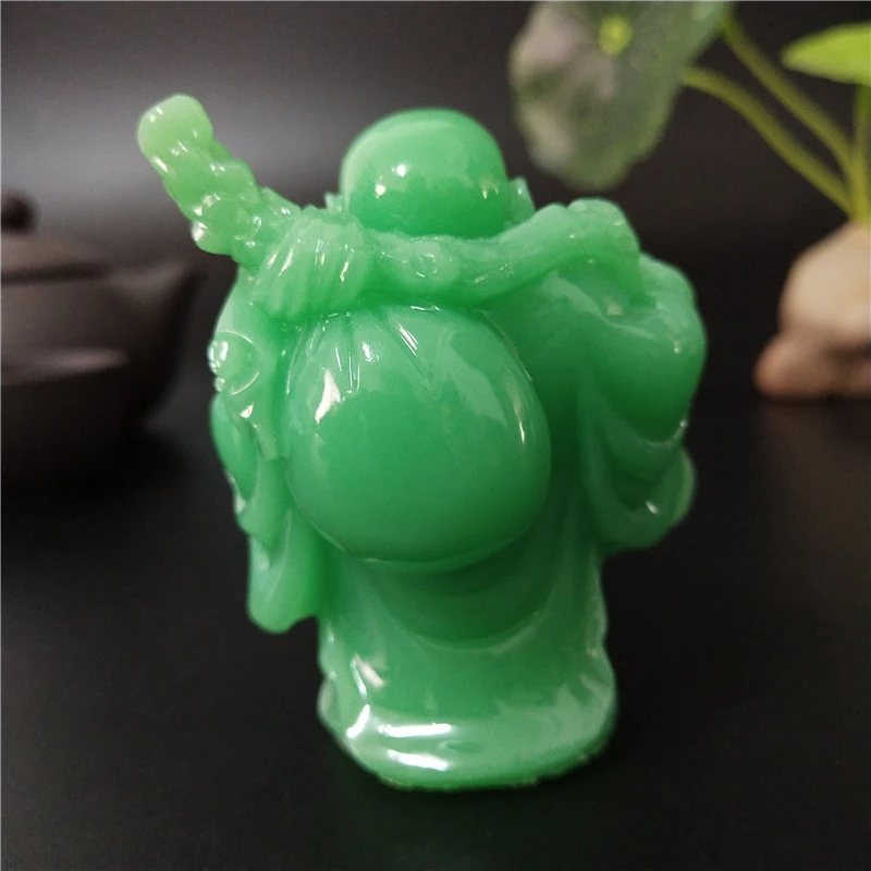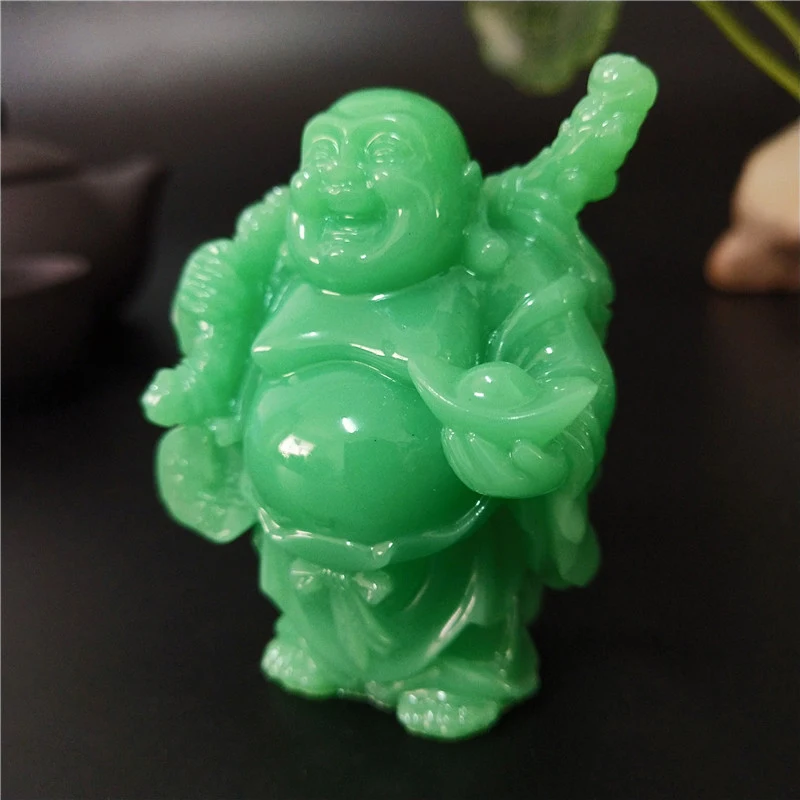 Statue de bouddha riant en argent chinois brillant, Sculpture en pierre de Jade artificielle, décoration de la maison, Statues de bouddha Maitreya