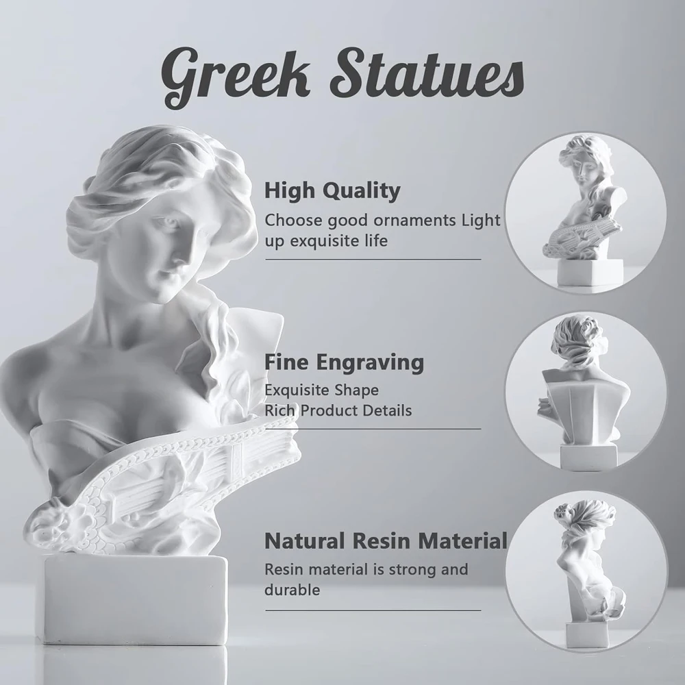 Statue de buste de mythologie grecque, décoration de déesse romaine, Figurines de croquis, Sculptures esthétiques pour salon, bibliothèque, bureau