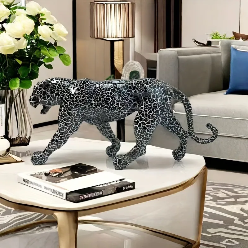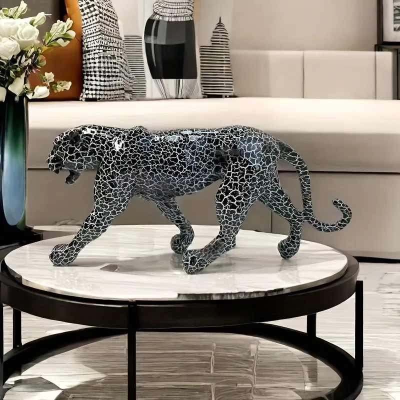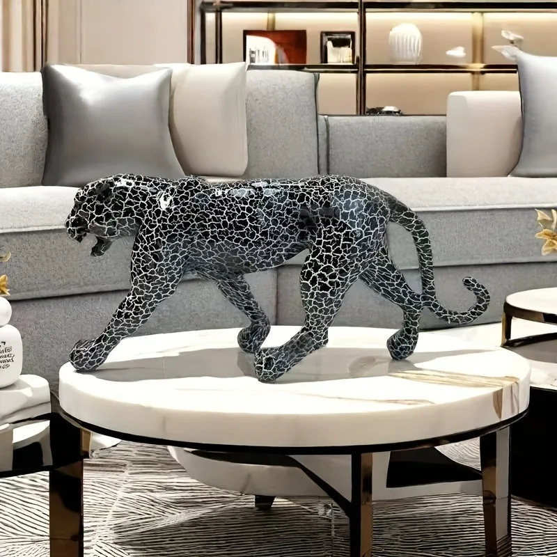 Statue de léopard moderne, sculpture géométrique de guépard en résine, décoration animale réaliste pour la maison, le salon, le bar, le bureau, 73
