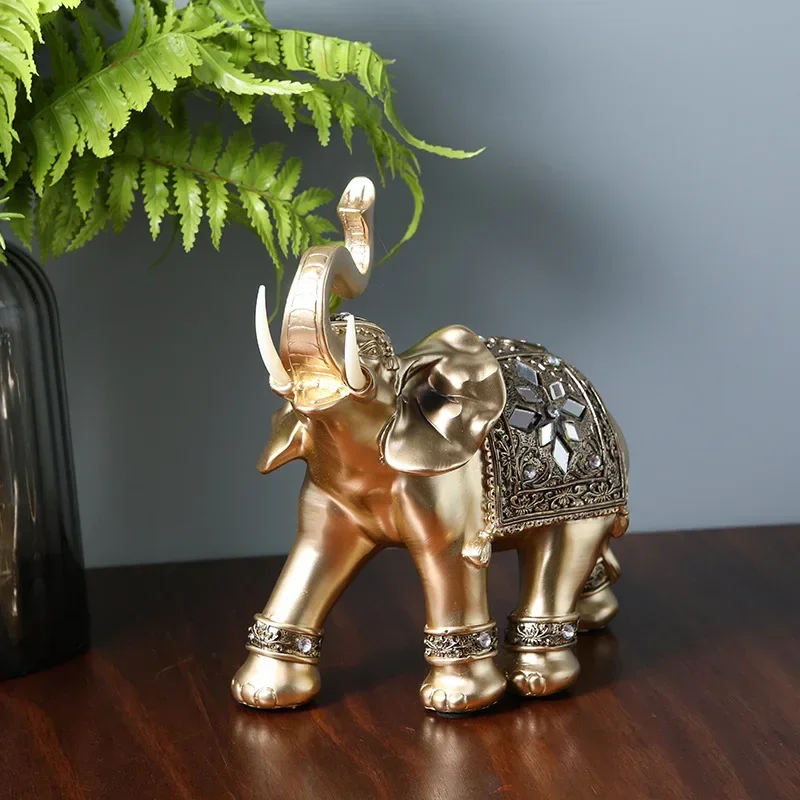 Statue d’éléphant en résine dorée, Feng Shui, élégante sculpture de tronc d’éléphant, figurine de richesse chanceuse, ornements d’artisanat pour la décoration intérieure