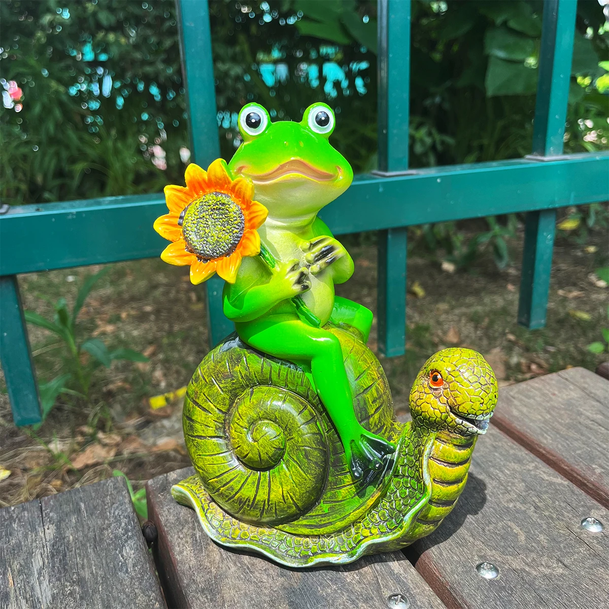 Statue d’escargot d’équitation de grenouille de bande dessinée, artisanat extérieur de résine d’animal, décorations d’art, jardin paysager illimité, 1pc