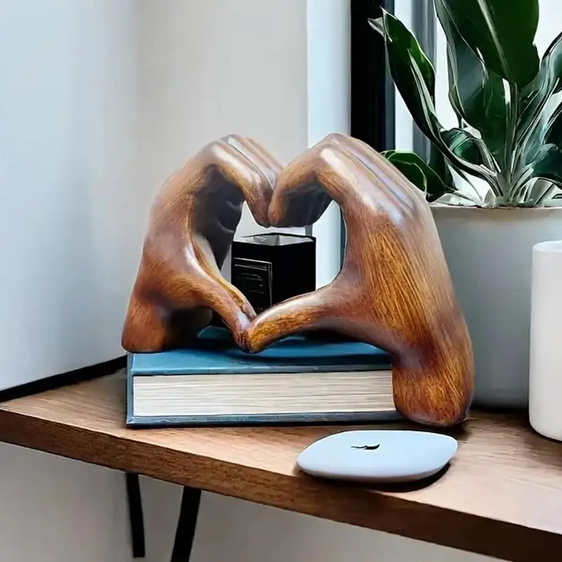 Statue mains en forme de cœur, décoration de geste d’amour, Sculpture d’art moderne, effet Grain de bois, Sculpture d’amour, décoration de salle de mariage
