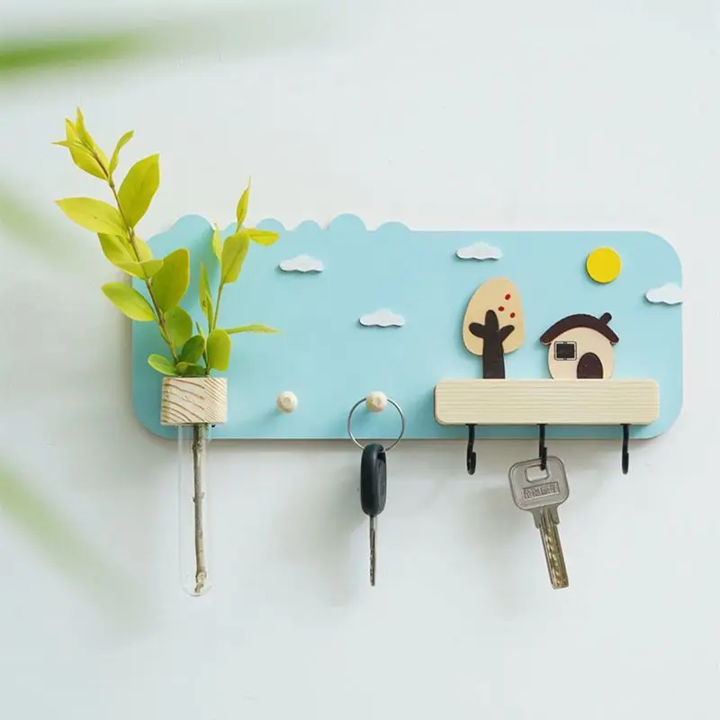 Support de rangement mural suspendu de Style quatre saisons, support de rangement mural en bois avec 6 crochets, organisateur de rangement Simple, décoration de la maison
